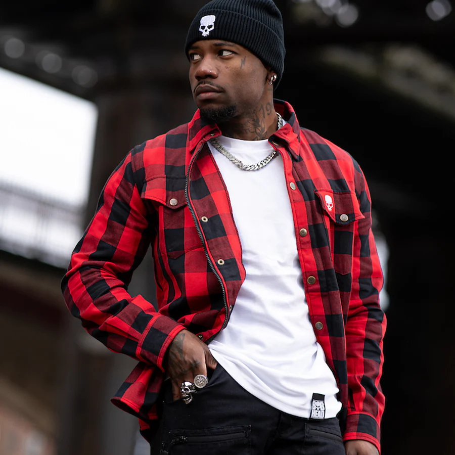 Official BOBHEAD Lumberjack casual cotton shirt. The lightweight casual shirt comes with Genuine YKK Zipper on Front, with hidden flap and gun metal skull branded studded buttons. extra comfort. Please note this shirt